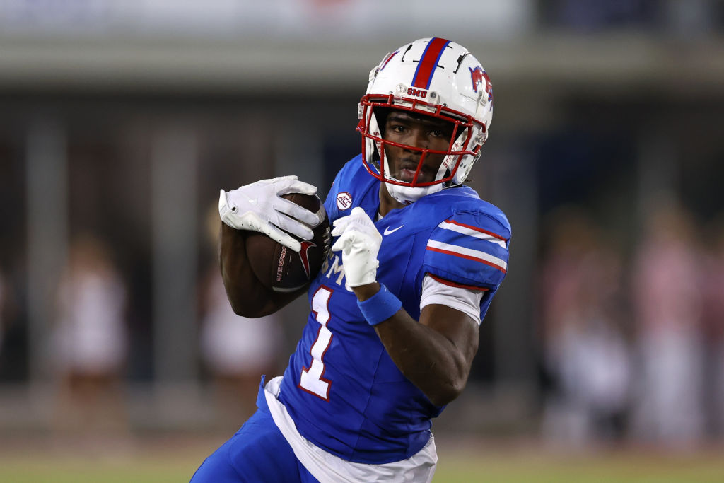 DALLAS, TEXAS – NOVEMBER 02: Brashard Smith #1 of the Southern Methodist Mustangs runs with the ball during the first half against the Pittsburgh Panthers at Gerald J. Ford Stadium on November 02, 2024 in Dallas, Texas. (Photo by Sam Hodde/Getty Images)