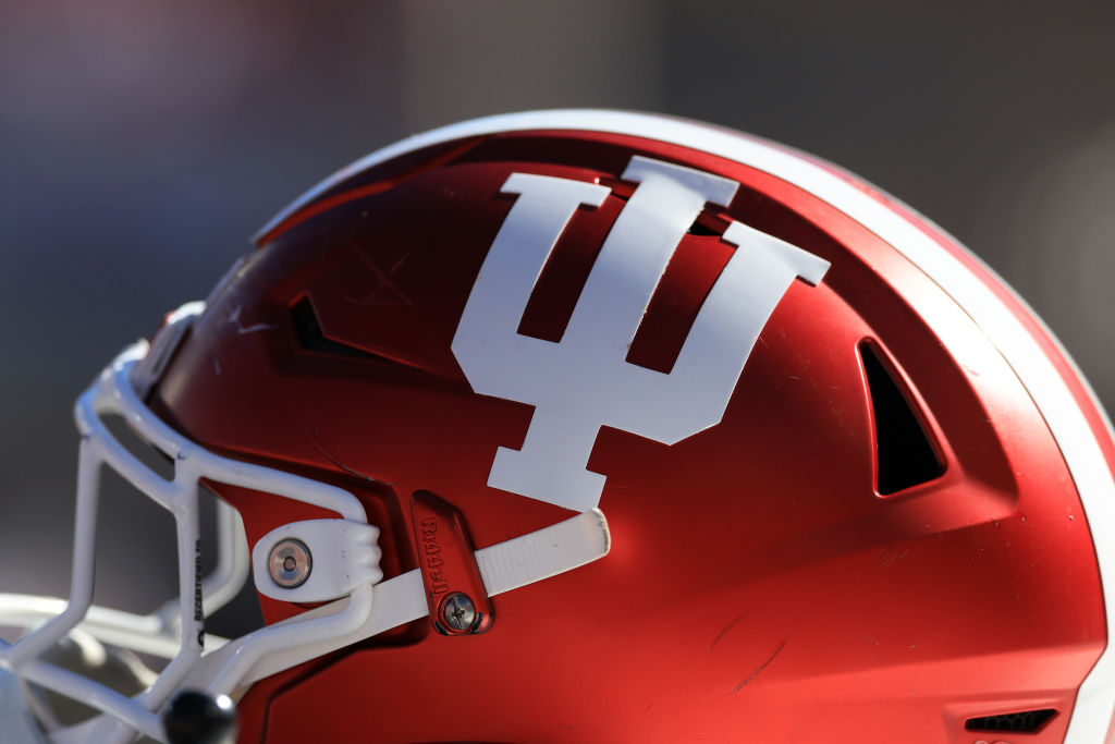 BLOOMINGTON, INDIANA – OCTOBER 19: The Indiana Hoosiers logo is seen on a helmet on the sidelines in the game against the Nebraska Cornhuskers at Memorial Stadium on October 19, 2024 in Bloomington, Indiana. (Photo by Justin Casterline/Getty Images)