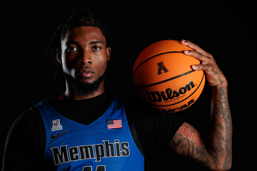 ARLINGTON, TEXAS – OCTOBER 13: Tyrese Hunter of The University of Memphis poses for a photo during the American Athletic Conference Basketball Media day at The Westin Irving Convention Center at Las Colinas on October 13, 2024 in Irving, Texas. (Photo by Andrew Wevers/Getty Images)