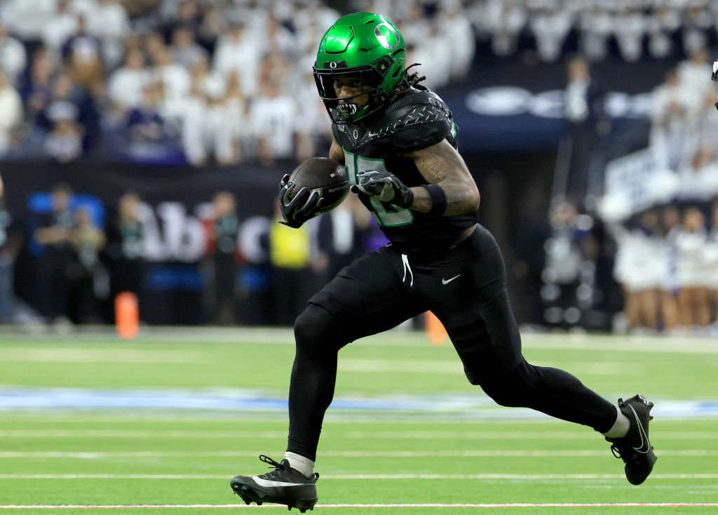 INDIANAPOLIS, INDIANA – DECEMBER 07: Jordan James #20 of the Oregon Ducks runs the ball against the Penn State Nittany Lions in the 2024 Big Ten Football Championship at Lucas Oil Stadium on December 07, 2024 in Indianapolis, Indiana. (Photo by Justin Casterline/Getty Images)
