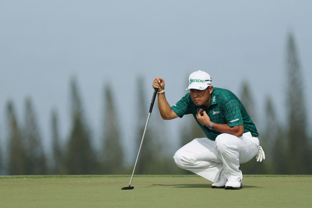 KAPALUA, HAWAII – JANUARY 04: Hideki Matsuyama of Japan lines up a putt on the fifth green during the third round of The Sentry 2025 at Plantation Course at Kapalua Golf Club on January 04, 2025 in Kapalua, Hawaii. (Photo by Sarah Stier/Getty Images)
