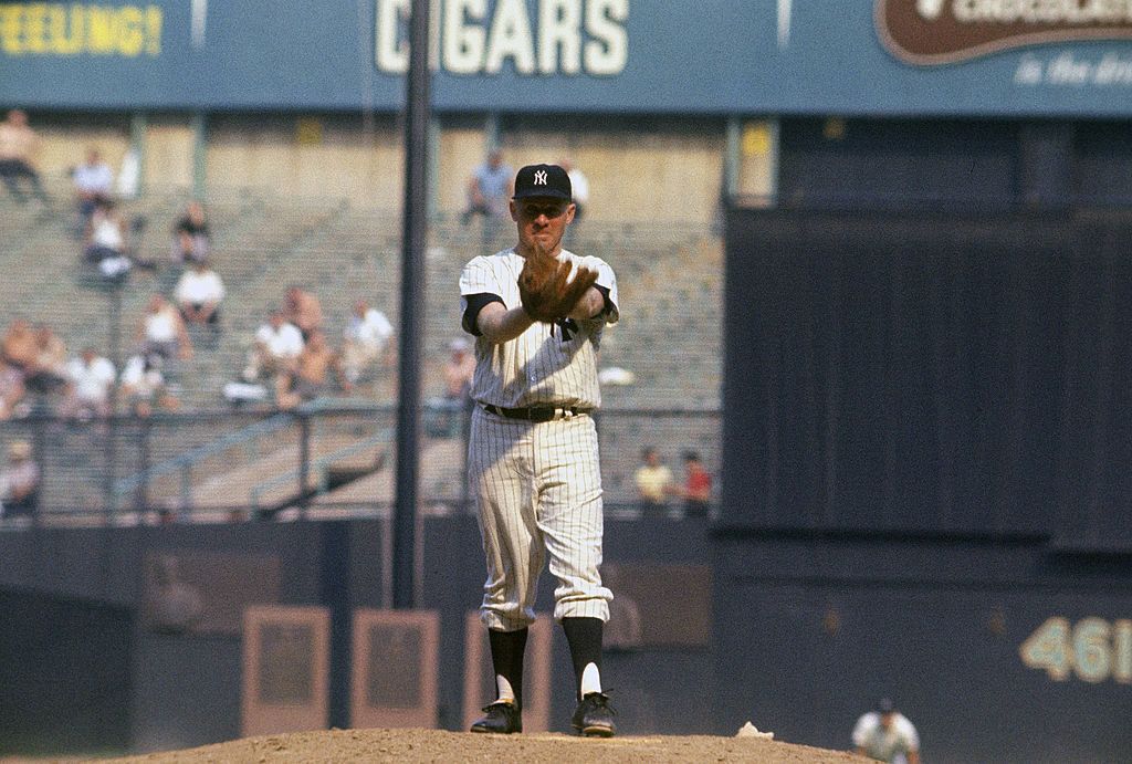 NEW YORK – CIRCA 1963: Pitcher Whitey Ford #16 of the New York Yankees pitches during an Major League Baseball game circa 1963 at Yankee Stadium in the Bronx borough of New York City. Ford played for the Yankees in 1950 and 1953-67. (Photo by Focus on Sport/Getty Images)
