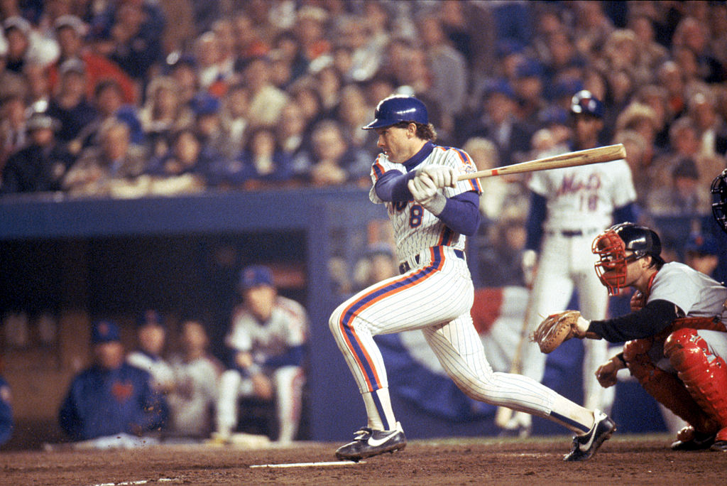 FLUSHING, NY – OCTOBER, 1986: Gary Carter #8 of the New York Mets swings at the pitch during the 1986 World Series game against the Boston Red Sox in October, 1986 at Shea Stadium in Flushing, New York. The Mets won the series 4-3. (Photo by Getty Images)
