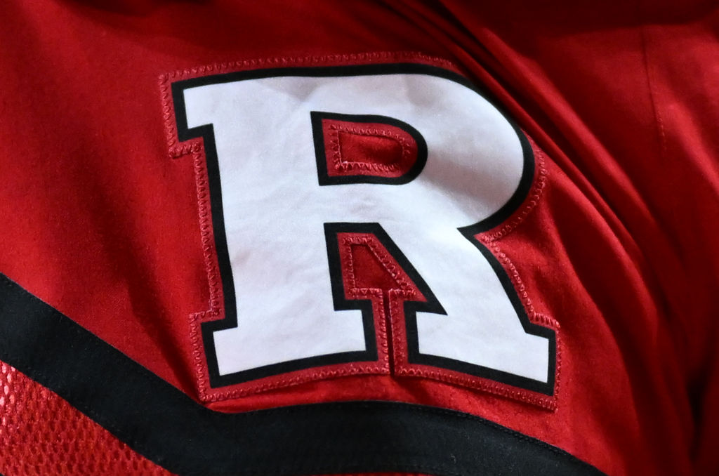 COLLEGE PARK, MARYLAND – FEBRUARY 06: A view of the Rutgers Scarlet Knights logo on their uniform during the game against the Maryland Terrapins at Xfinity Center on February 06, 2024 in College Park, Maryland. (Photo by G Fiume/Getty Images)