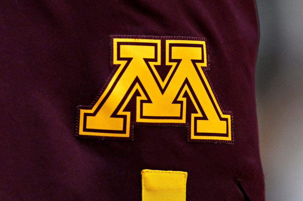 COLLEGE PARK, MARYLAND – FEBRUARY 22: A view of the Minnesota Golden Gophers logo on their uniform during the game against the Maryland Terrapins at Xfinity Center on February 22, 2023 in College Park, Maryland. (Photo by G Fiume/Getty Images)