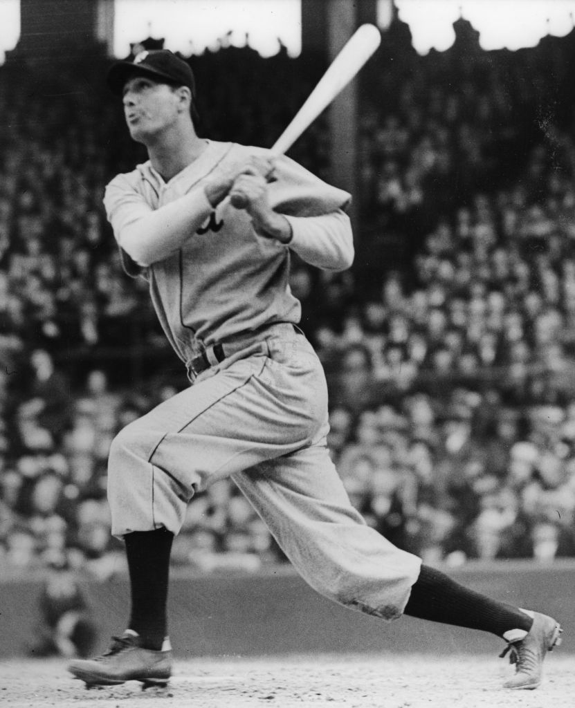 CHICAGO – APRIL 20, 1938. Hank Greenberg, first baseman for the Detroit Tigers, hits a home run on opening day of the 1938 season against the Chicago White Sox on April 20, 1938. (Photo by Mark Rucker/Transcendental Graphics, Getty Images)