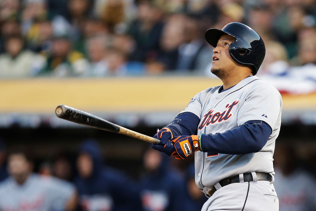 OAKLAND, CA – OCTOBER 10: Miguel Cabrera #24 of the Detroit Tigers watches his two-run home run in the fourth inning against the Oakland Athletics during Game Five of the American League Division Series at O.co Coliseum on October 10, 2013 in Oakland, California. (Photo by Ezra Shaw/Getty Images)