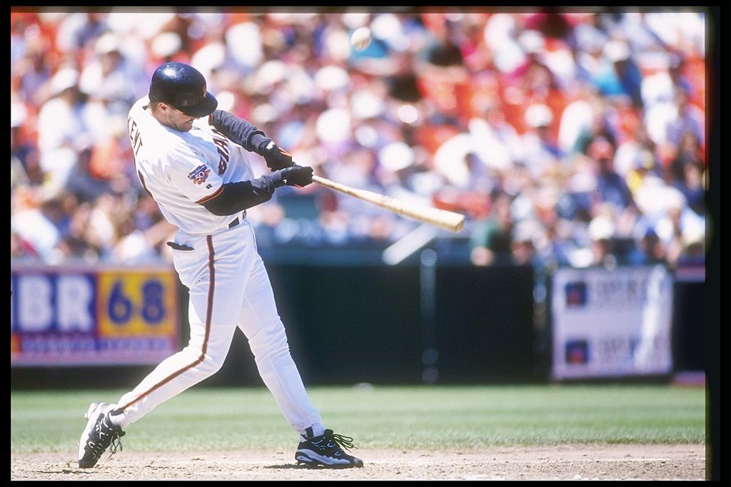 12 Aug 1997: Second baseman Jeff Kent of the San Francisco Giants swings at the ball during a game against the Cincinnati Reds at 3Com Park in San Francisco, California. The Giants won the game 7-3. Mandatory Credit: Otto Greule /Allsport