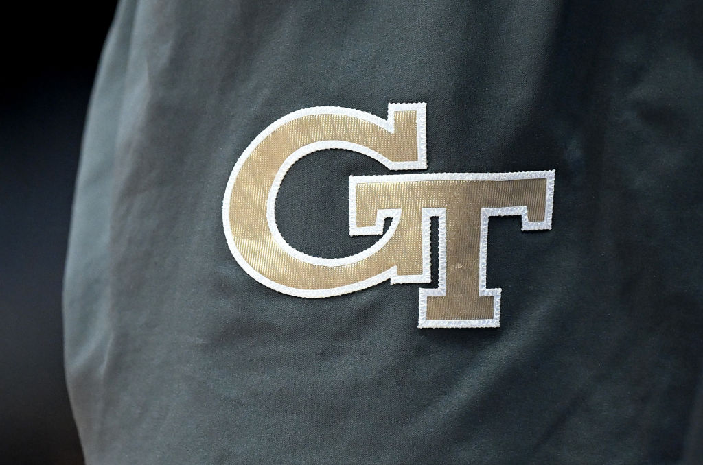 WASHINGTON, DC – MARCH 12: A view of the Georgia Tech Yellow Jackets logo on their uniform during the game against the Notre Dame Fighting Irish in the First Round of the ACC Men’s Basketball Tournament at Capital One Arena on March 12, 2024 in Washington, DC. (Photo by G Fiume/Getty Images)