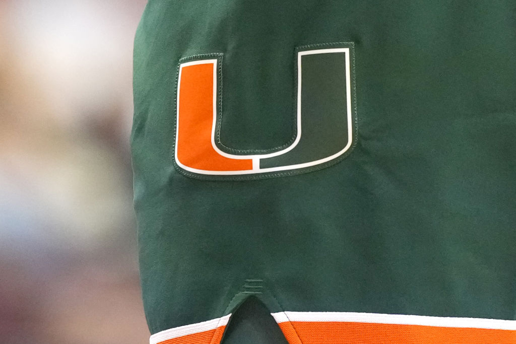 CHARLESTON, SC – NOVEMBER 22: A detailed view of the Miami Hurricanes logo shown on shorts during the Shriners Children’s Charleston Classic college basketball game against the Oklahoma State Cowboys at TD Arena on November 22, 2024 in Charleston, South Carolina. (Photo by Mitchell Layton/Getty Images)