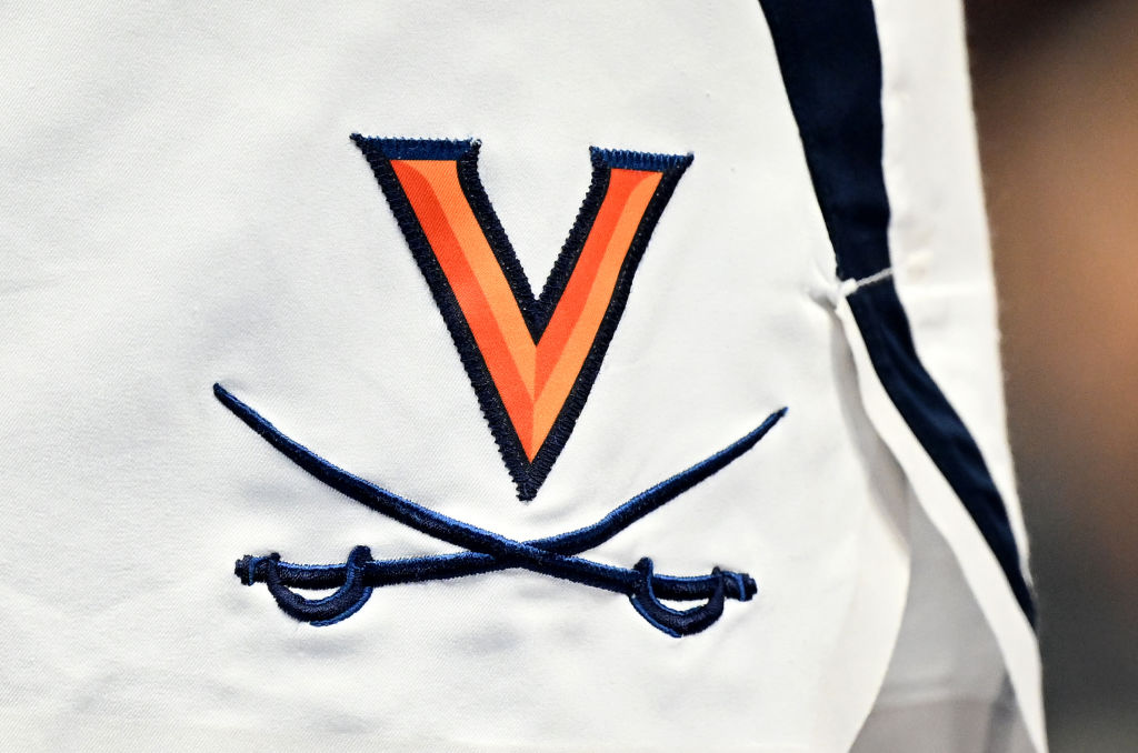 WASHINGTON, DC – MARCH 14: A view of the Virginia Cavaliers logo on their uniform during the game against the Boston College Eagles in the Quarterfinals of the ACC Men’s Basketball Tournament at Capital One Arena on March 14, 2024 in Washington, DC. (Photo by G Fiume/Getty Images)
