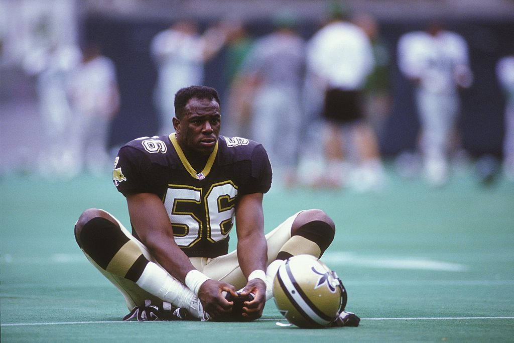 PHILADELPHIA, PA – DECEMBER 26: Pat Swilling #56 of the New Orleans Saints before a NFL football game against the Philadelphia Eagles on December 26, 1993 at Veterans Stadium in Philadelphia, Pennsylvania. (Photo by Mitchell Layton/Getty Images)