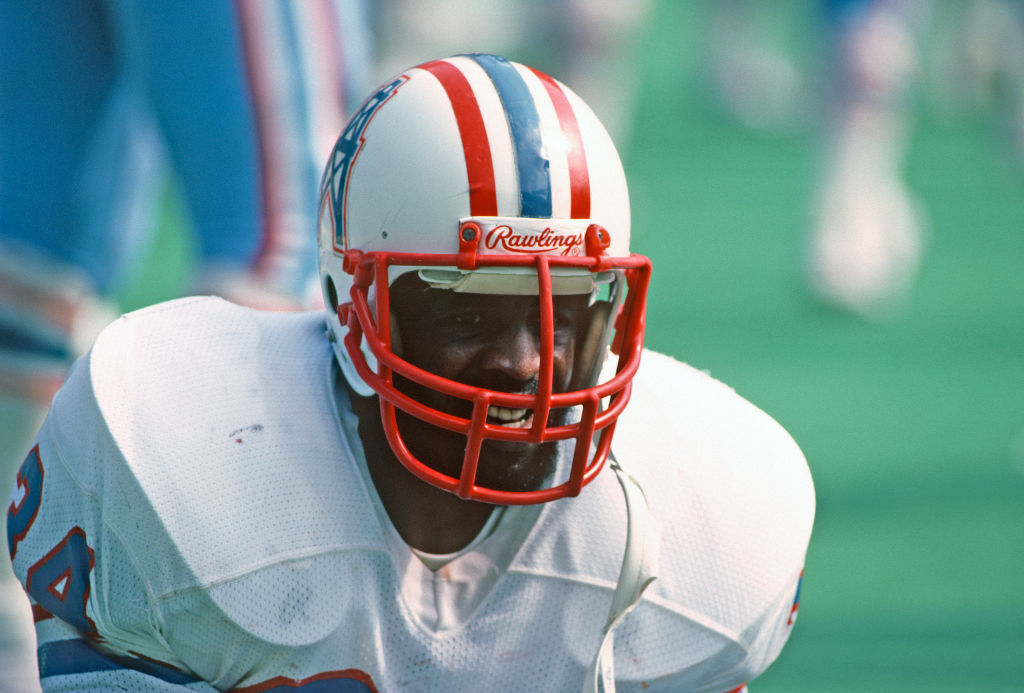 PITTSBURGH, PA – OCTOBER 2: Running back Earl Campbell #34 of the Houston Oilers looks on from the field before a game against the Pittsburgh Steelers at Three Rivers Stadium on October 2, 1983 in Pittsburgh, Pennsylvania. The Steelers defeated the Oilers 17-10. (Photo by George Gojkovich/Getty Images)