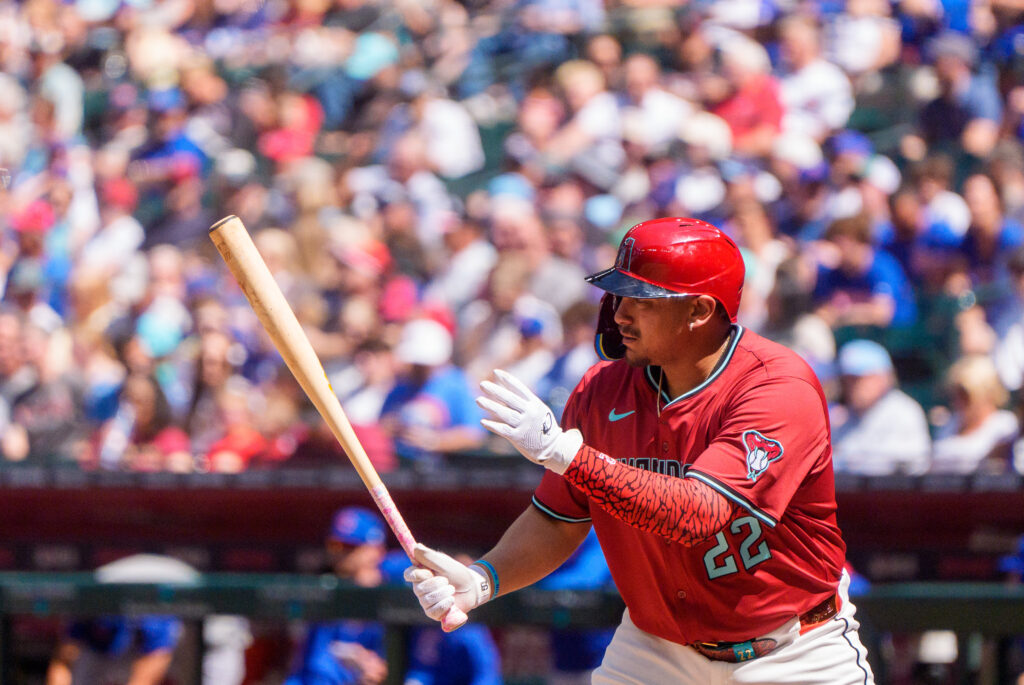 Mar 30, 2025; Phoenix, Arizona, USA; Arizona Diamondbacks infielder Josh Naylor (22) at bat in the second inning against the Chicago Cubs at Chase Field. Mandatory Credit: Allan Henry-Imagn Images