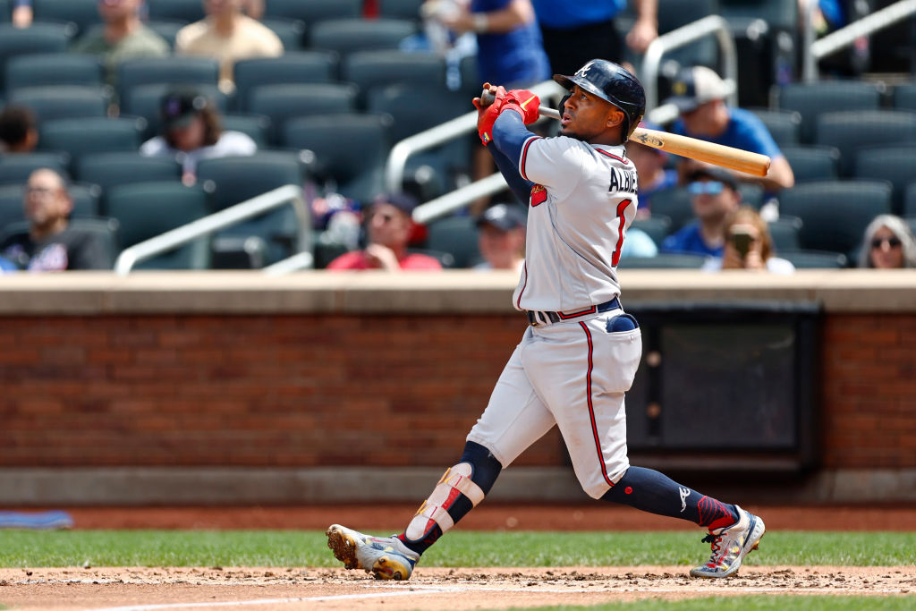NEW YORK, NEW YORK – AUGUST 12: Ozzie Albies #1 of the Atlanta Braves in action against the New York Mets during game one of a doubleheader at Citi Field on August 12, 2023 in New York City. (Photo by Rich Schultz/Getty Images)