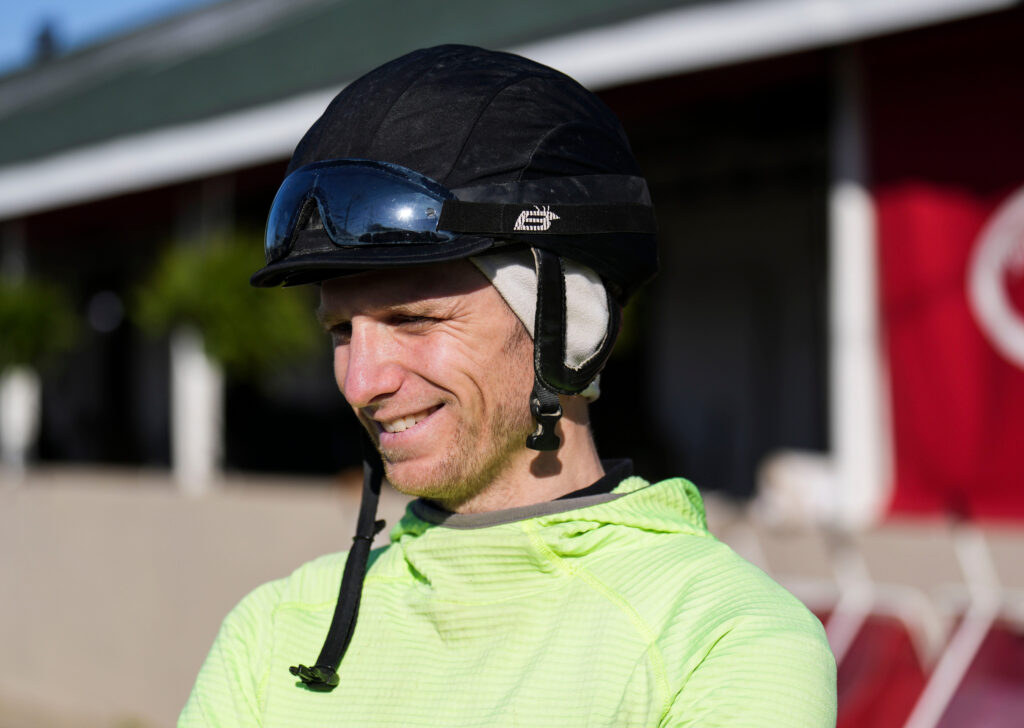 May 2, 2023; Louisville, KY, USA; Jockey Jareth Loveberry, outside Barn 1 on Tuesday morning at Churchill Downs in Louisville, Ky., will ride Kentucky Derby contender Two Phil’s. Mandatory Credit: Matt Stone-USA TODAY Sports