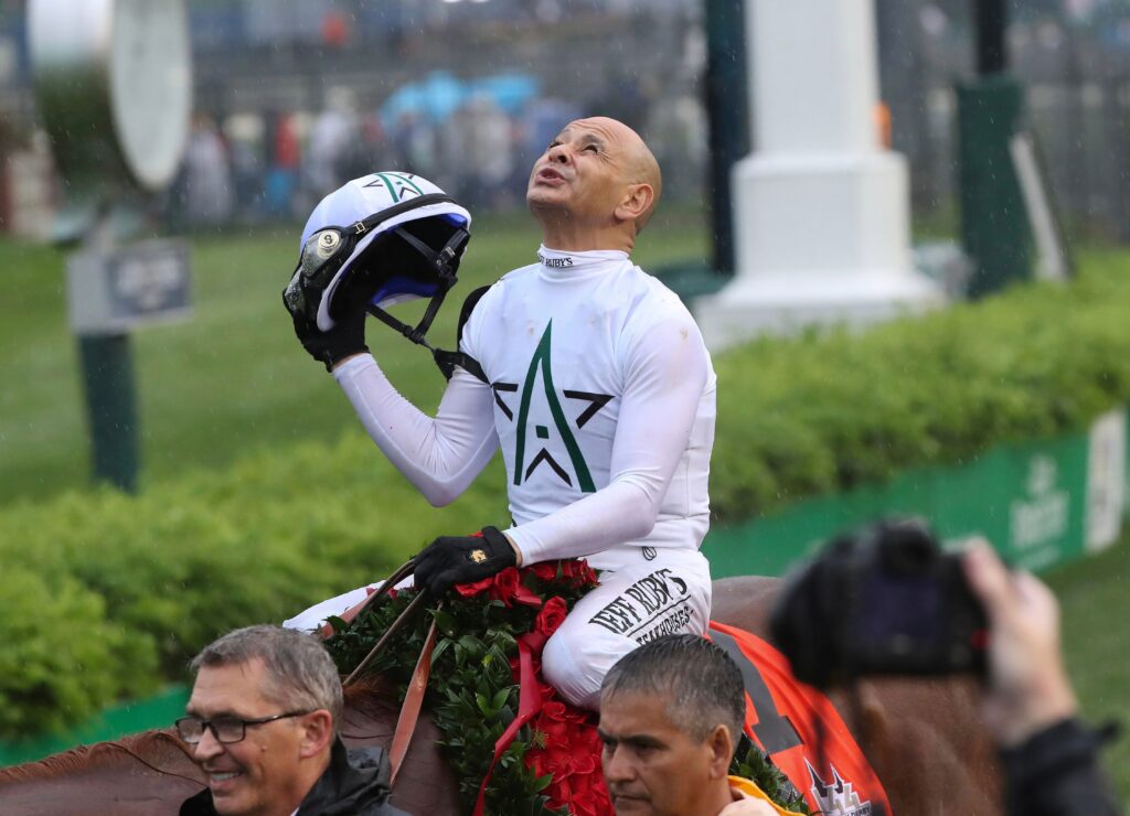 Jockey John Velazquez wins the Kentucky Derby aboard Always Dreaming in May 2017.