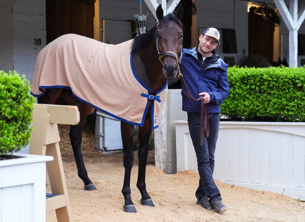 Kentucky Derby 151 contender Flying Mohawk with trainer Whit Beckman. The horse is Beckman’s second entry in the Kentucky Derby; he finished eighth with Honor Marie in 2024. Flying Mohawk has earned $295,800 so far. Last race he finished second in the Grade 3 Jeff Ruby Steaks on March 22 at Turfway Park.