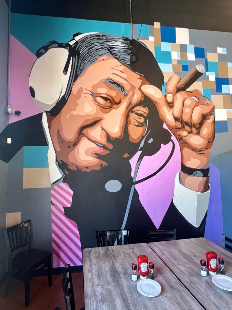 This mural of legendary sportscaster Howard Cosell, painted by Florida artist Matt Kress, is on the wall at Gameday Live, the new sports grill at the Gadsden Mall.