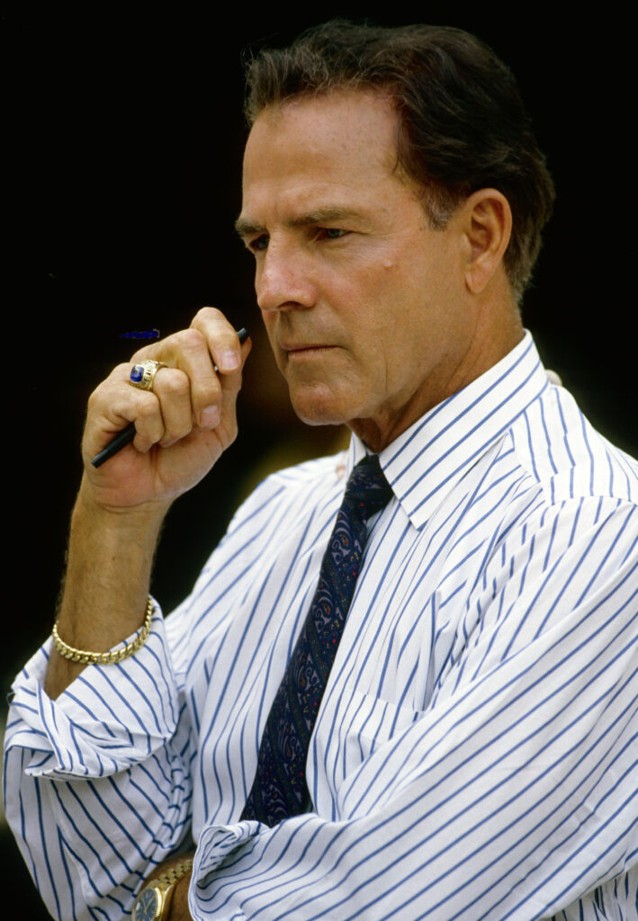 Aug 16, 1988; Miami, FL, USA; FILE PHOTO; ABC broadcaster and former Giants running back Frank Gifford on the field prior to a game between the Miami Dolphins and the Washington Redskins at Joe Robbie Stadium. Mandatory Credit: USA TODAY Sports