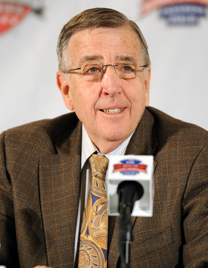 Jan 6, 2010, Newport Beach, CA, USA; Brent Musburger at press conference for the 2010 BCS National Championship between the Texas Longhorns and Alabama Crimson Tide at the Newport Beach Marriott Hotel & Spa. Mandatory Credit: Kirby Lee-USA TODAY Sports