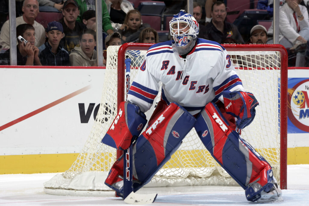 Sep 27, 2005; East Rutherford, NJ, USA; New York Rangers goalie Henrik Lundqvist (30) in action against the New Jersey Devils at Continental Airlines Arena. Credit: Lou Capozzola-USA TODAY NETWORK