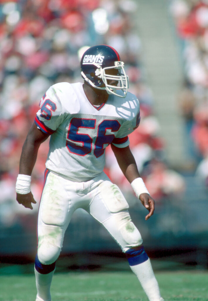 EAST RUTHERFORD, NJ – DECEMBER 5: Lawrence Taylor #56 of the New York Giants in action against the Houston Oilers during an NFL football game December 5, 1982 at The Meadowlands in East Rutherford, New Jersey. Taylor played for the Giants from 1981-93. (Photo by Focus on Sport/Getty Images)