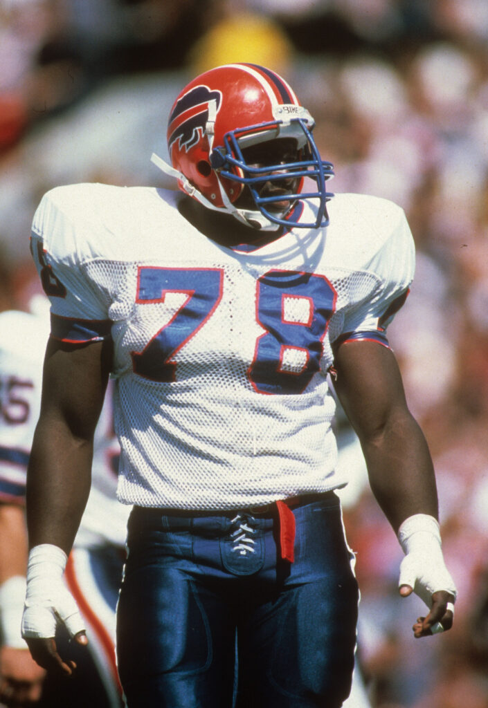 Aug, 1986; Chicago, IL, USA; FILE PHOTO; Buffalo Bills defensive tackle Bruce Smith (78) in action during the preseason against the Chicago Bears at Soldier Field. Mandatory Credit: Malcolm Emmons-USA TODAY Sports