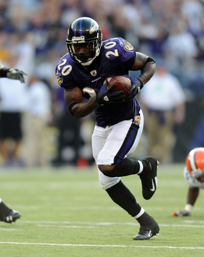 Sept 21, 2008; Baltimore, MD, USA; Baltimore Ravens FS Ed Reed (20) carries the ball after an interception in the second half against the Cleveland Browns at M&T Bank Stadium. Mandatory Credit: James Lang-USA TODAY Sports