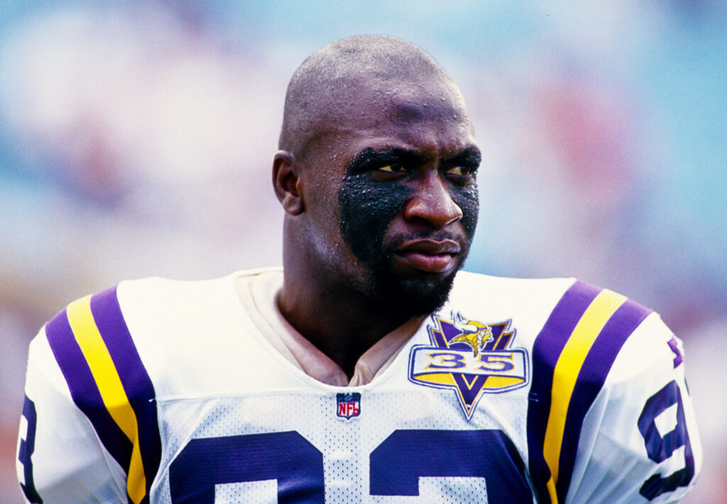 Sep 3, 1995; Chicago, IL, USA; FILE PHOTO; Minnesota Vikings defensive tackle John Randle (83) on the sidelines against the Chicago Bears at Soldier Field. Mandatory Credit: Peter Brouillet-USA TODAY NETWORK