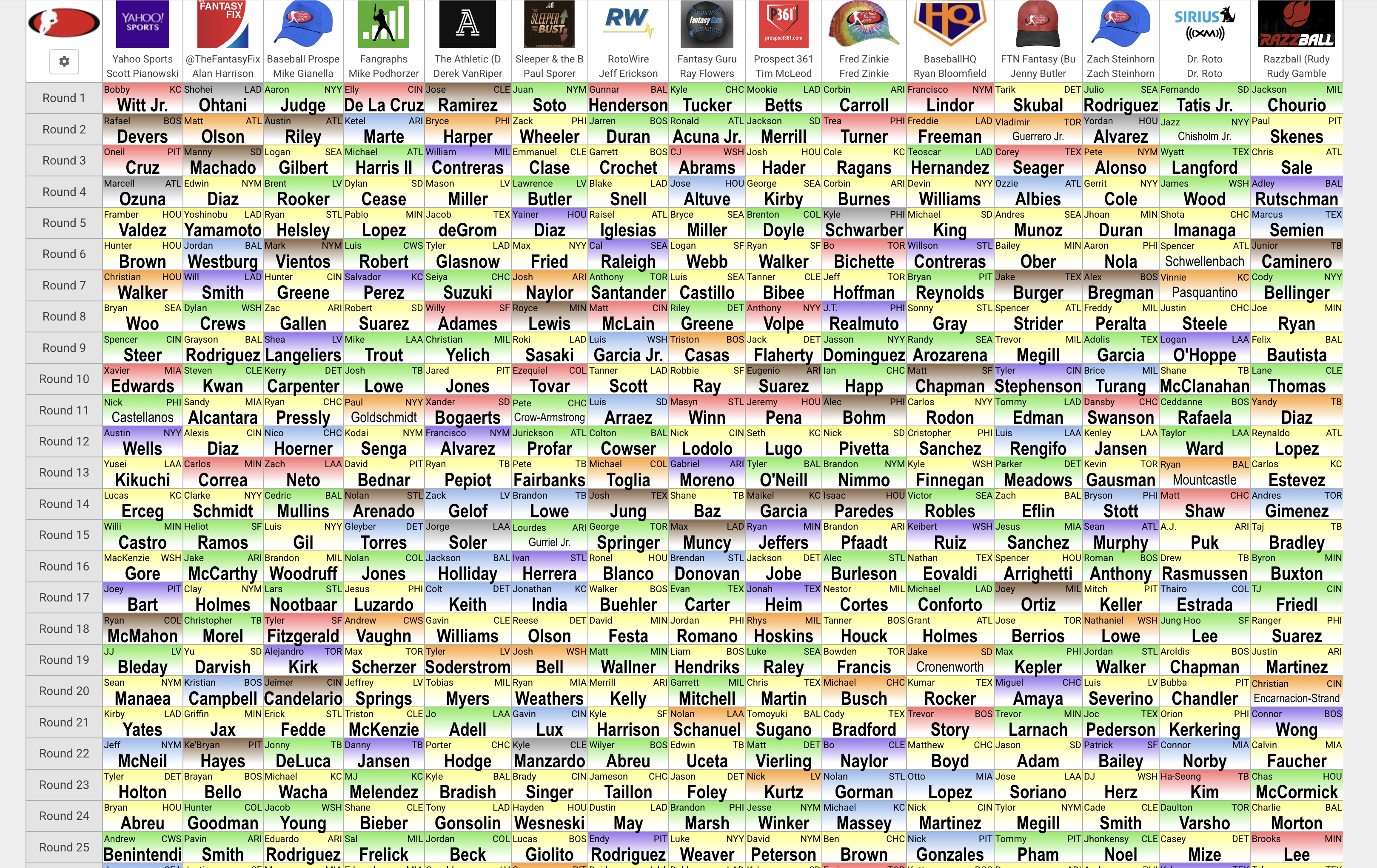 I have added the draft board to the end of the article so you can see what the other teams did. I came in second two years ago, so I am hoping to get the “W” this season!