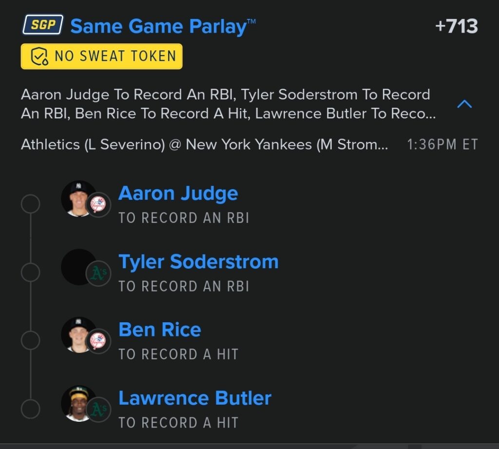 Sunday is finally here, but unfortunately, I have been driving on highways all weekend while drafting a team in Buffalo for the Scott Fish Bowl. That being said, I wanted at least to take advantage of the No-Sweat bet in FanDuel, so I played all of these as singles and then threw down the NSB on the parlay. Let’s enjoy our Sunday while we make more money today. Have a great day, everyone, and may the “bets” be with you.