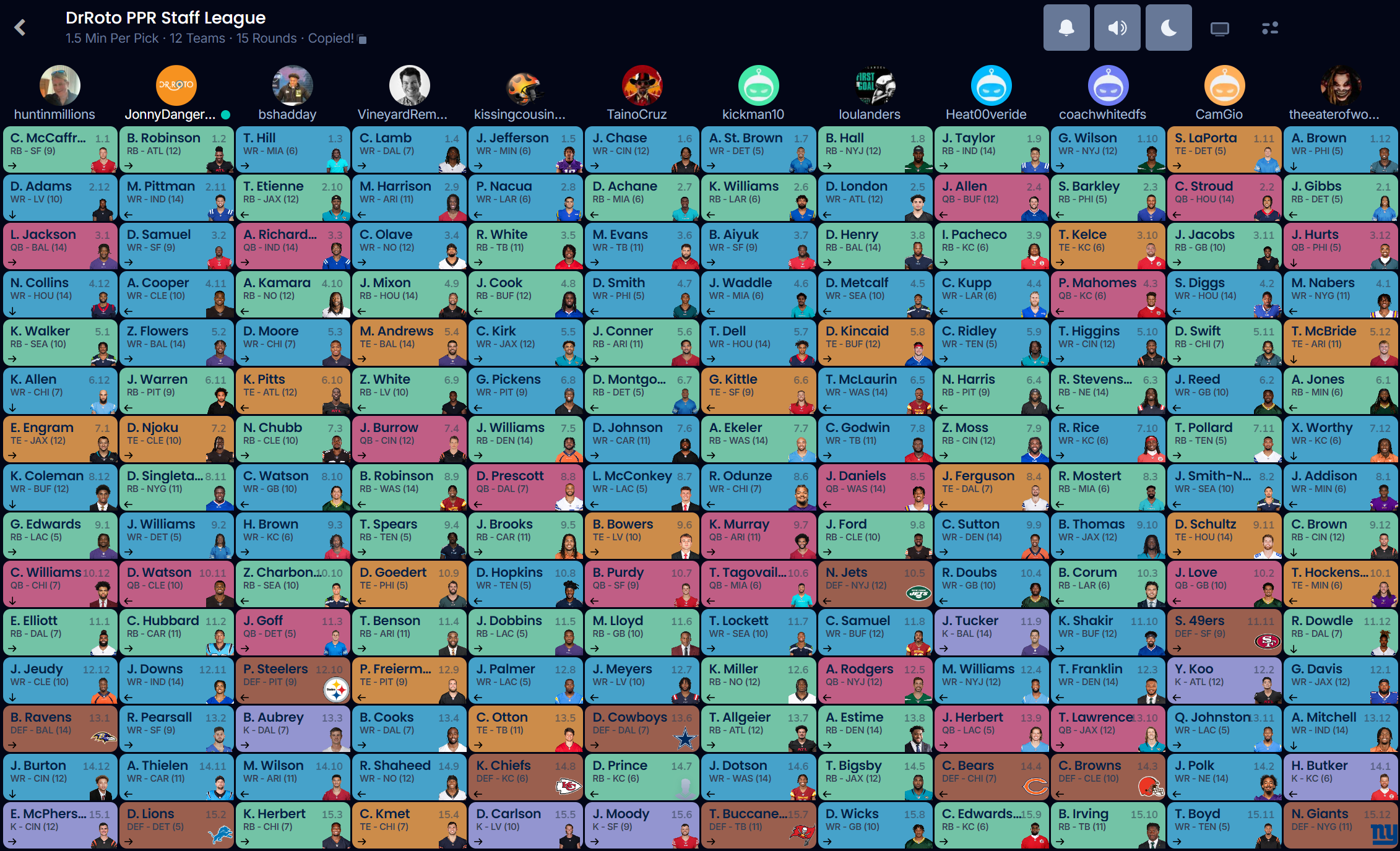 NFL DrRoto.com Staff PPR Draft Board ByJonny Danger Published August 5, 2024 Flipboard Reddit Pinterest Whatsapp Whatsapp Email In this article:Featured