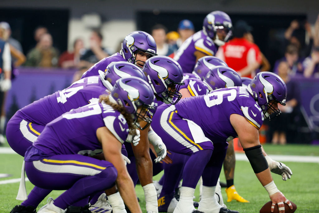 MINNEAPOLIS, MINNESOTA - JANUARY 15: Kirk Cousins #8 of the Minnesota Vikings prepares to take a snap during the first quarter against the New York Giants in the NFC Wild Card playoff game at U.S. Bank Stadium on January 15, 2023 in Minneapolis, Minnesota. (Photo by David Berding/Getty Images)
